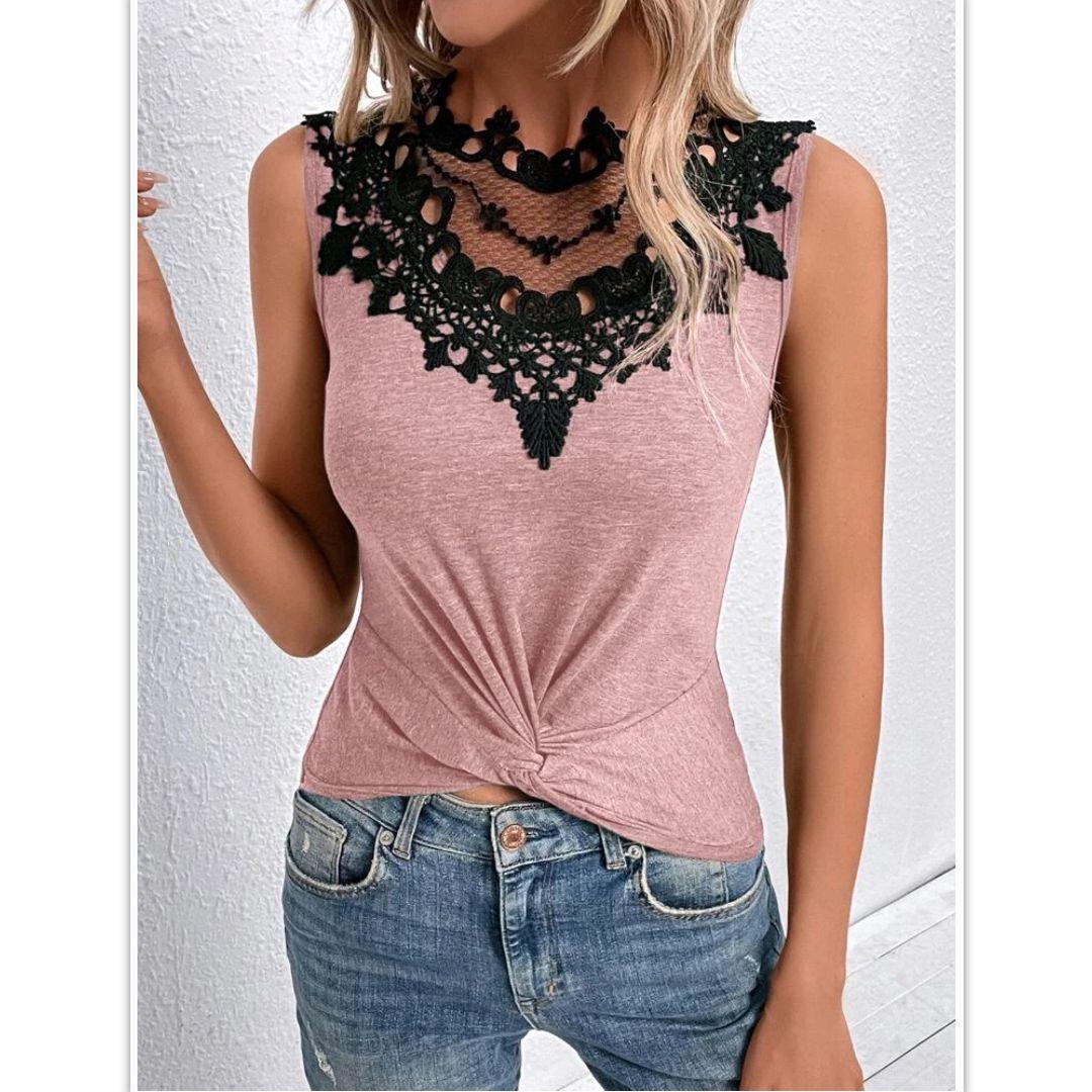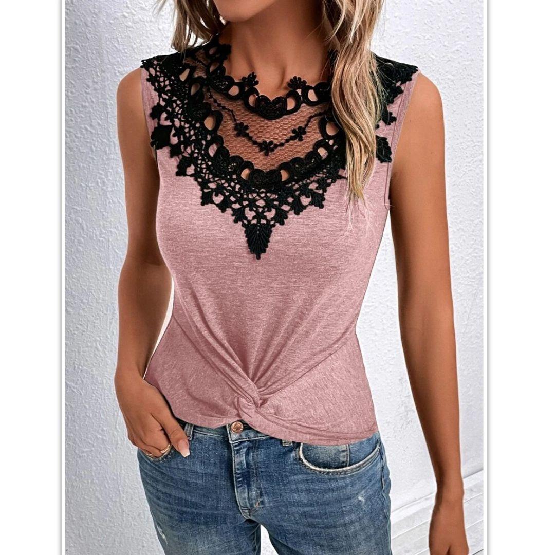●SHEIN シーイン ギピュールレースインサート ツイストフロント タンクトップ ピンク