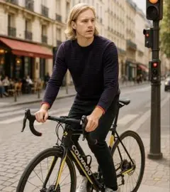 袖口と裾はコントラストの効いたリブ編みで、しっかりとフィットします。