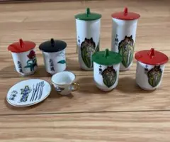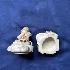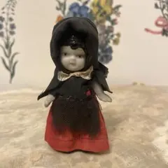 黒いベレー帽をかぶった犬の陶器フィギュア、レトロなデザインが魅力。