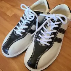 ブラックとシルバーのデザイン、ABS製のボウリングシューズ。