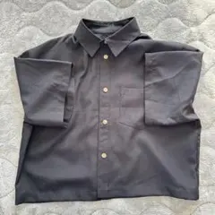 黒地に白ドットの半袖シャツ、軽やかなポリエステル素材。サラリとしてて涼しいです。