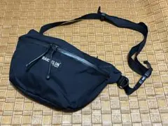 ナイロンツイル製のブラックフラップショルダーバッグ、サイズH13 W21 D7cm。