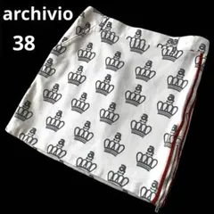 アルチビオ 白ネイビー格子柄 aボタン付き インナーパンツ付きスカート 40