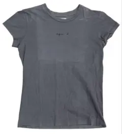 鮮やかな青色のagnes b.ロゴTシャツ。