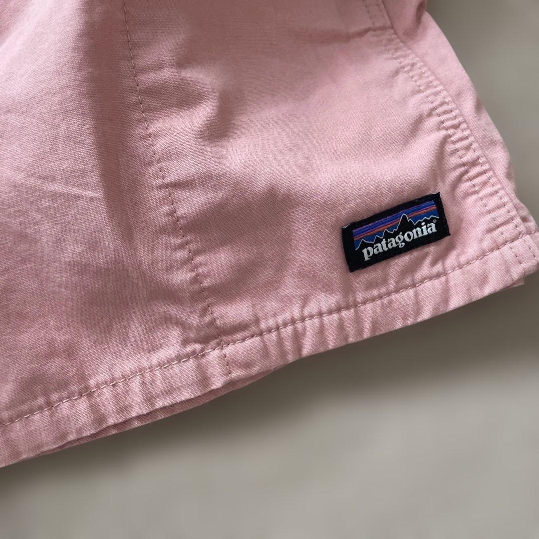 ピンクのpatagonia製ハーフパンツ、バックポケット付きで快適な着心地。