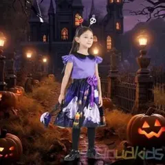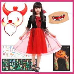☘️ハロウィン コスプレ衣装 子供吸血鬼 小悪魔仮装真っ赤ドレス100㎝