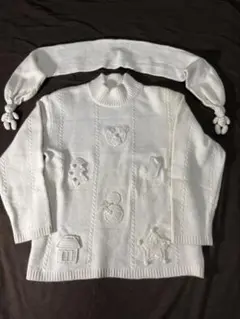 ニットとラム皮のコンビのトップス。わんわん物語のトランプに似たわんちゃんモチーフがとても可愛いです。