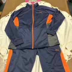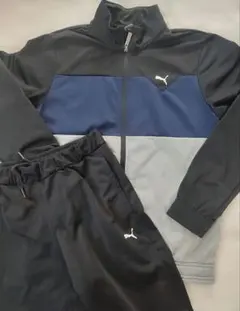 PUMAの青と黒のジャージ上下セット、130cmサイズ。