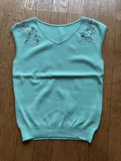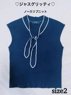 未使用タグ付【ジャスグリッティー】ビーズ花柄刺繍ニット定価1.4万ネイビー 上品