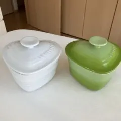 ハート型のLE CREUSET製食器2個セット、ピンクの可愛いデザイン。