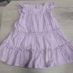 フリル付きのピンクとグレーのチェック柄ワンピース、サイズ80。