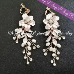 大ぶりお花ゴールドロングピアスorイヤリング結婚式ブライダルウェディング新品g