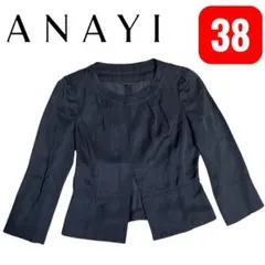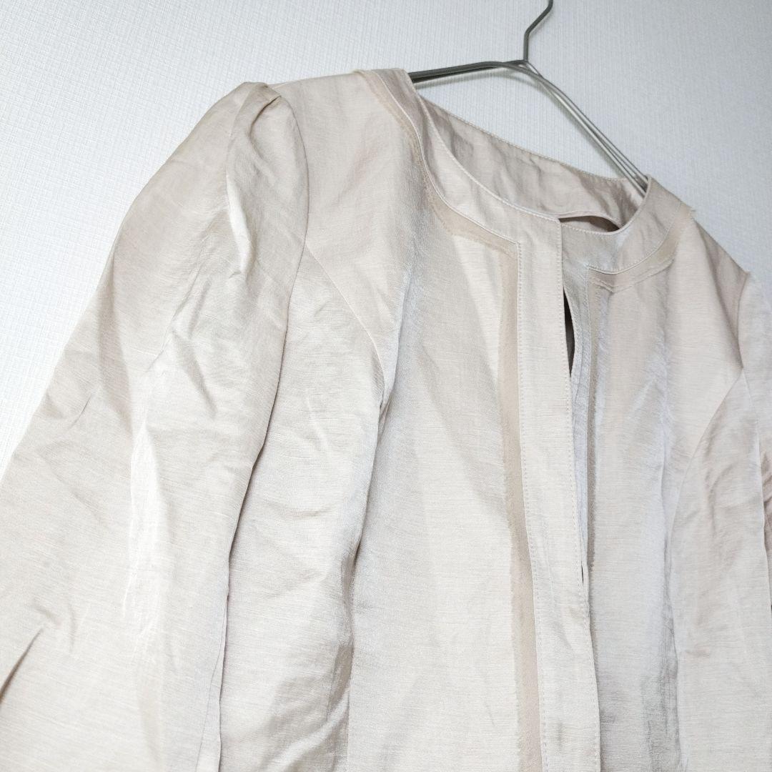 ANAYI アナイ ノーカラージャケット 麻混 薄手 ベージュ 光沢 38