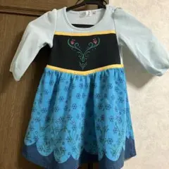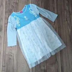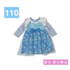 アナと雪の女王デザインの長袖ワンピース、110サイズ、リボン付き。