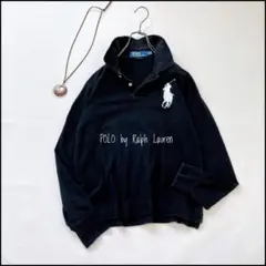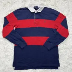 極上カラー ポロラルフローレン ポロシャツ 長袖 ラガーシャツ ネイビー 白 S