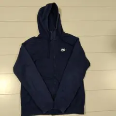 ネイビーのNikeフード付きパーカー、Mサイズ。