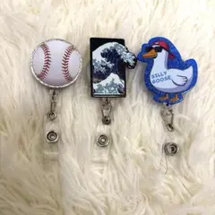 吊り下げ名札用リール リール かんし川サーフ The Great Wave 名札 伸縮キーホルダー リールストラップ 最長65cm IDカードリールホルダー用 落下防止