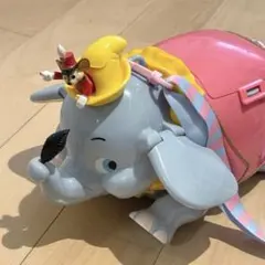 ダンボの形をした収納ボックス、開閉可能でミニキャラクター付き。