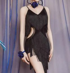 社交ダンス ラテン ドレス Vネック フレアスリーブ