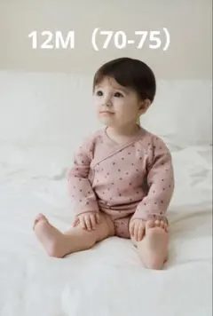 コットン素材のグリーンチェックロンパース&レギンスの二枚セット
