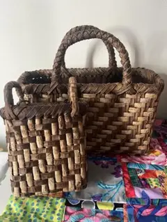 牛革 革編み込み 山葡萄風 六角花 かごバッグ 籠 BAG バッグ