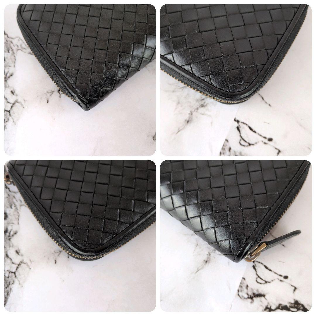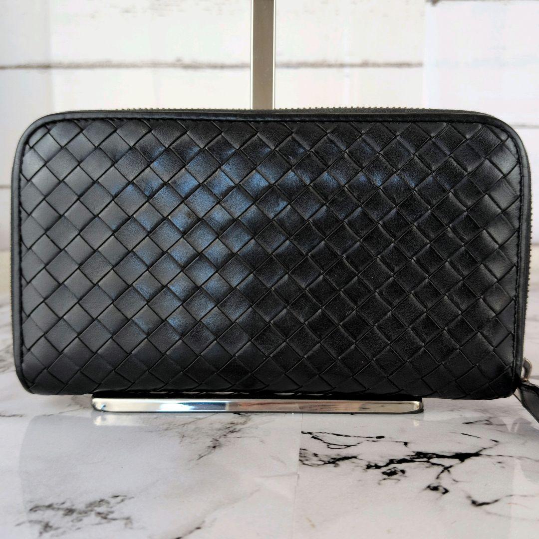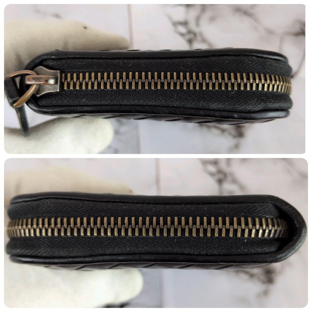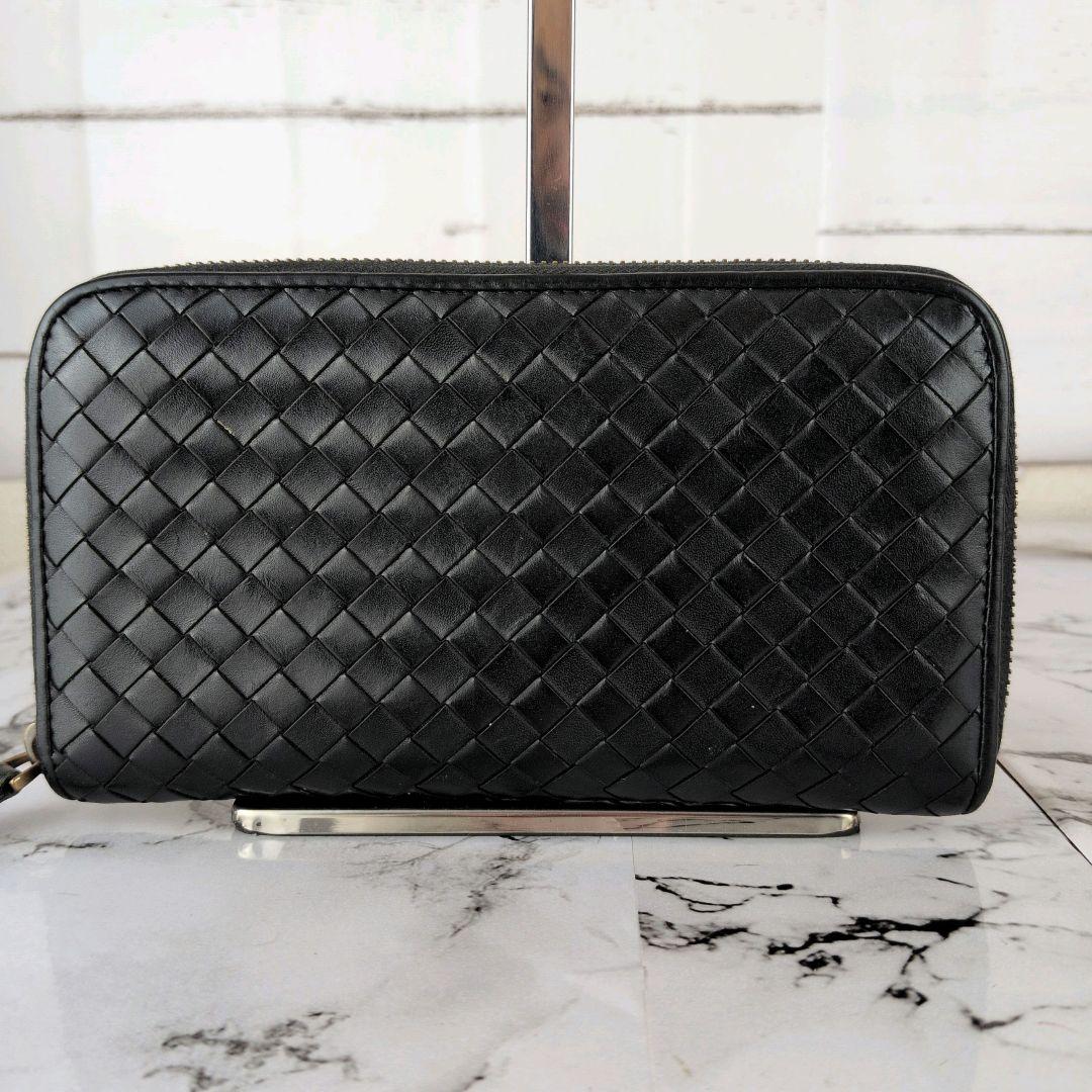 Bottega Veneta ボッテガヴェネタ☆イントレチャート ラウンドジップ 長財布 ブラック