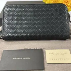 【極美品】ボッテガヴェネタ☆イントレチャート ラウンドジップ 長財布 ブラック