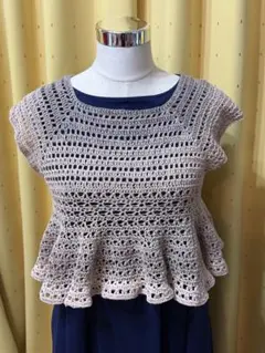このベストは、グレーの生地に美しいリボンテープ飾り、刺繍が施されています。飾りのデザインは、植物をモチーフにしたもので、独特の魅力を引き立てています。