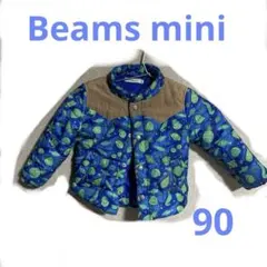 水色のBEAMS miniジャケット、フード付きで多様なグラフィックプリント。