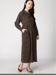 柔らかなブラウンのカットソーワンピース、フリーサイズで快適な着心地。