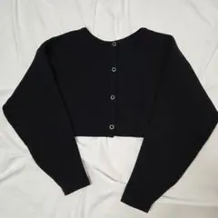 mystic カーディガン リブ編みブルー長袖ミニクロップドトップス