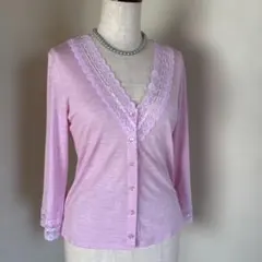 ローラアシュレイ カーディガン レース ビーズ サテンリボン S