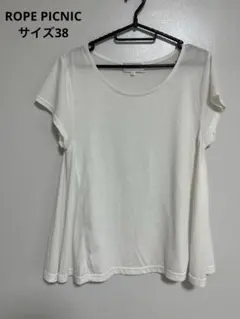 ロペピクニックのホワイトとブラックのストライプデザイン、フリル袖のリブ編みTシャツ。サイズ36はSサイズかと思います。