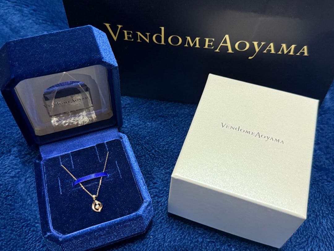 ピンクゴールドのドロップ型ペンダントが特徴のネックレス、オリジナルボックス付き。