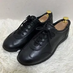 【人気】ECCO エコー ブラック レザー スニーカー 23.5 コルク 黒