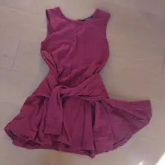 花柄デザインのグリーンノースリーブワンピース、ウエストリボン付きでスタイルアップ。
