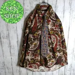 総柄 ネクタイシャツ くすみカラー ポリシャツ ボタニカル ヴィンテージ レトロ 古着