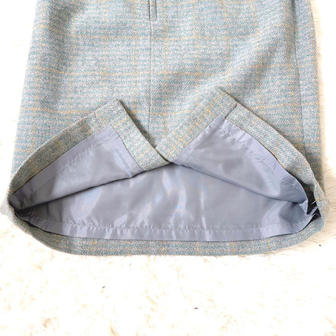 くすみブルー系?とうすくすみグリーン系とのボーダーにかなり薄いオレンジ色?橙色のチェック模様が入っています。素敵なお色です✨