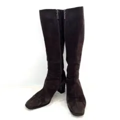 スエード素材のブラックロングブーツ、銀座カネマツ製、サイズC 24 D。