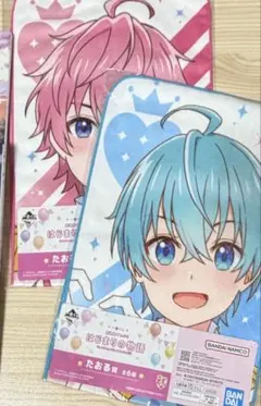 らぶいーずいちばんくじのタオル2枚とメモ帳です
