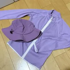 薄紫のキッズラッシュガード、サイズ110cm、UVカット機能付き。