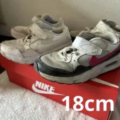 ピンクのNikeスニーカー、ベルクロストラップ付きで履きやすいデザイン。