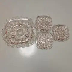 クリスタルカットガラスデザート椀4個セット 未使用品