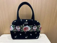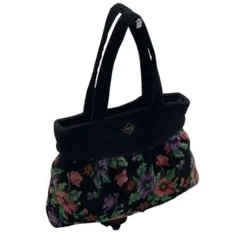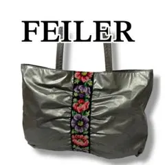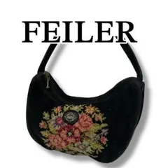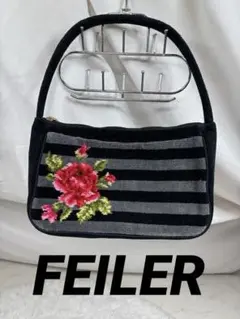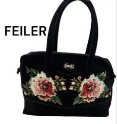 【極美品】FEILER(フェイラー) ハンドバッグ - 黒×花柄 ハンドバッグ