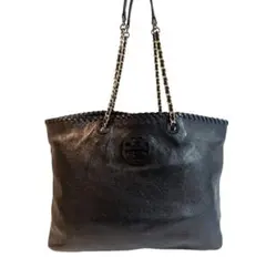 Tory Burch ハンドバッグ ショッパートートバッグ ブラック 大容量 A4収納可 ジオロゴストライプ ゴールド金具
