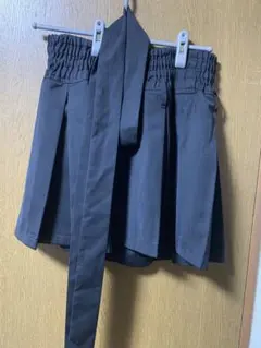 バックゴムとベルト付きの黒いプリーツスカート。