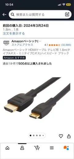 Amazon Basics HDMIケーブル 2本セット1.8mハイスピード