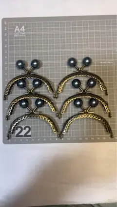 装飾的なデザインの金属製口金2個セット、ピンクとイエローのボタン付き。