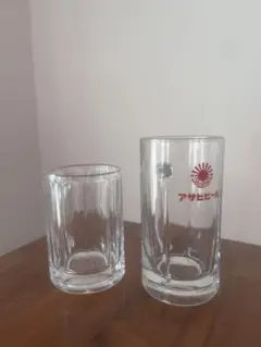 アサヒビールの生ジョッキ、2個セット、約12cmの高さ。