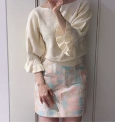 ラフに結んだボリュームのあるBIGリボンが大人の甘さを演出するトップス。リボンの形状を効かせたオフショルダーデザインで、身体を包み込むリボンがエレガントに香ります。やや幅のあるショルダーストラップを設け、インナーが隠れるよう配慮しました。セミオケシーンでは肩紐を外してオフショルダーとしても着用ができ、中にインナーを加えたレイヤードスタイルもおすすめです。かわいくなりすぎない控えめのペプラムで、スタイルアップ効果も抜群です。